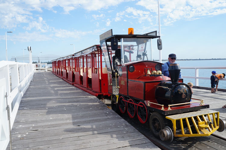 バッセルトン桟橋は全長1840メートルの木造桟橋をトロッコ列車が走ります