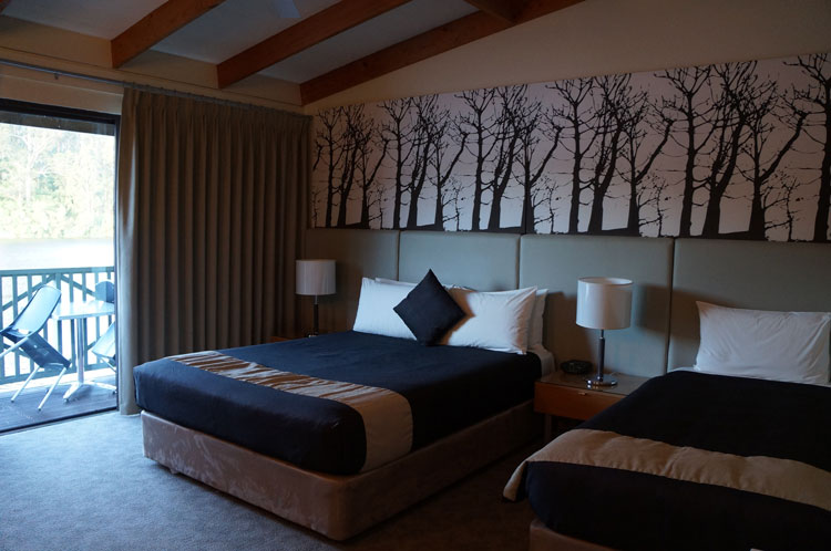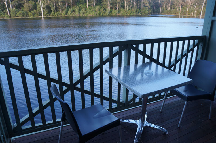 広々としたお部屋からは湖と森林ビュー。小さなテラスにあるテーブルに座って静かに耳を澄ますと森林に生息する鳥の鳴き声が和ませてくれます。ここでの夕食はオーストラリアン料理と西オーストラリアで有名なマーガレットリバー産のワインがオススメです。 (お部屋はシャワーオンリーとなります)