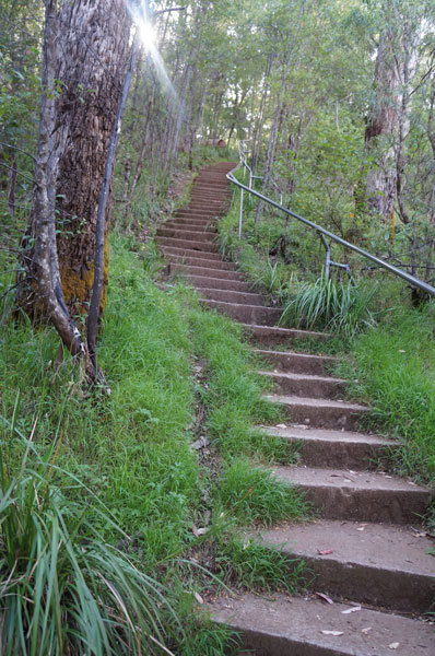 時に険しい階段があり、過ぎるとスリル満点の橋がみえてきます。 (高所恐怖症の方はここでU-タンされることお薦め致します) 橋が近づくと水の音が・・・緩やかな滝から綺麗な透き通った水が流れのどかな景色がご覧いただけます。さらに険しい階段を上がったところにビューポイントのスポットと休憩スペース。 ここまで来ると残り15分程。 こちらの初心者コースは約50分のウォーキングコースですが、物足りない方はロングコースへ・・・
