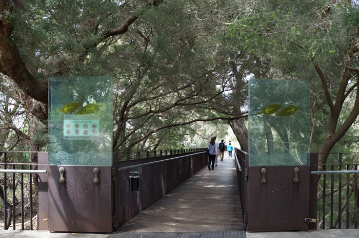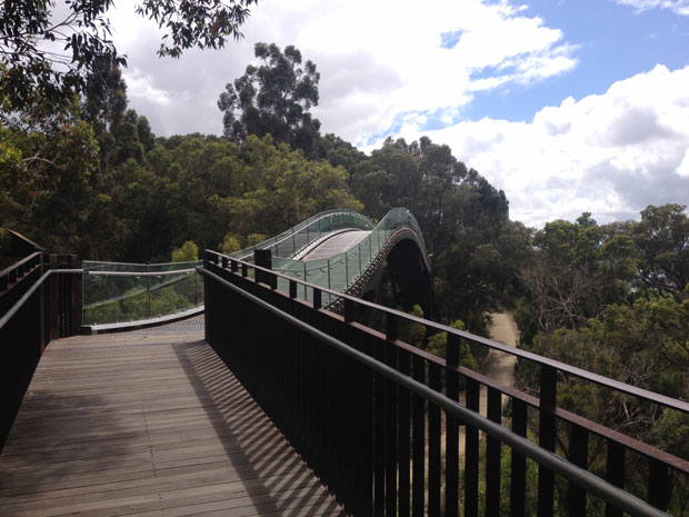 ガラスと鉄でできた52メートルの空中にかかるつり橋、フェデレーション・ウォークウェイはとても人気で木を見下ろすことができる橋です。