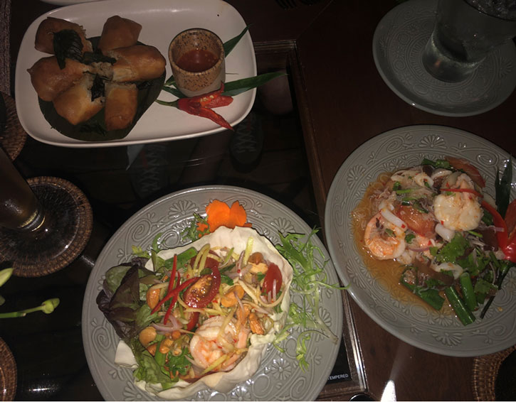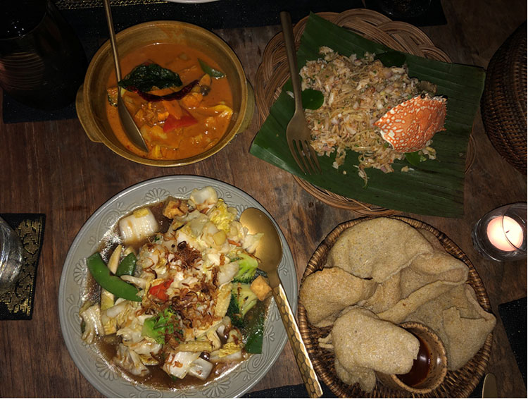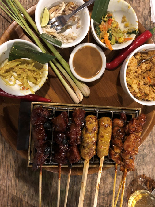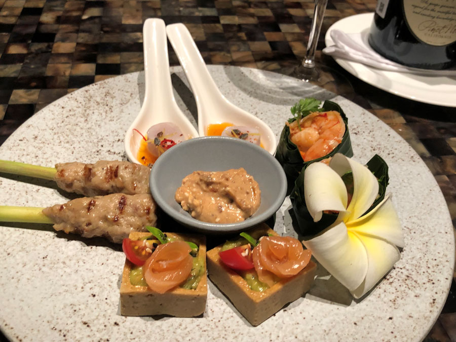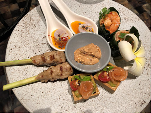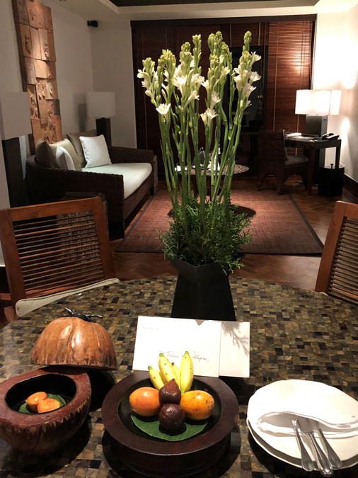 バトラーがお部屋へ案内。お部屋にはウェルカムフルーツのサービス。そしてお部屋のミニバーやwifiは無料。夜のベッドメイキングではお夜食のお届け。ワインやビールのアペリティーボ(食前酒)を楽しみ夕食へ~ 勿論、ホテル内レストランでのディナーもいいけど、スミニャックの街へ出かけてみるのもヨシ。 インドネシアンクイジーンをローカルレストランでいただくのも旅の醍醐味。