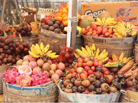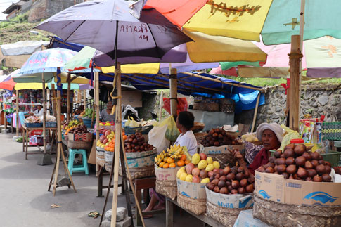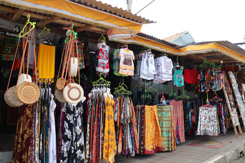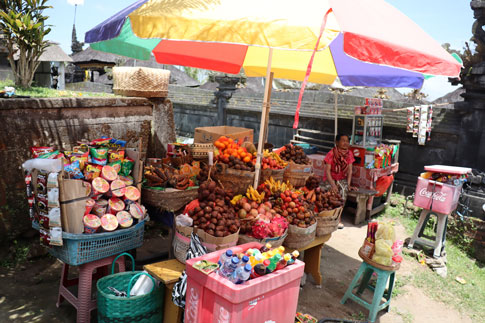 ブサキ寺院入り口にはバリ島の美味しいフルーツ屋さんやバリ島手工芸品「バティック」布のファッション、 雑貨屋さんがズラリ!