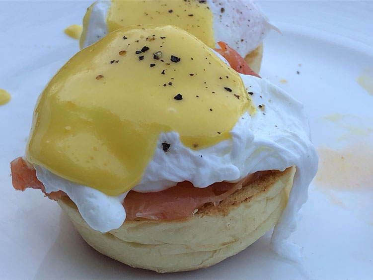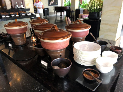 まずは数種類並ぶフレッシュな野菜やフルーツのジュースにヘルシーな素材のヨーグルト。メインは毎日替わるジャスミンライスやヌードル、カレー、ナシゴレンなどのインドネシアンクイジーン。 オーダーできる卵料理は、目玉焼きやスクランブルエッグ、ポーチドエッグの他、エッグベネディクトも OK!とってもヘルシーな朝食で1日がスタート!