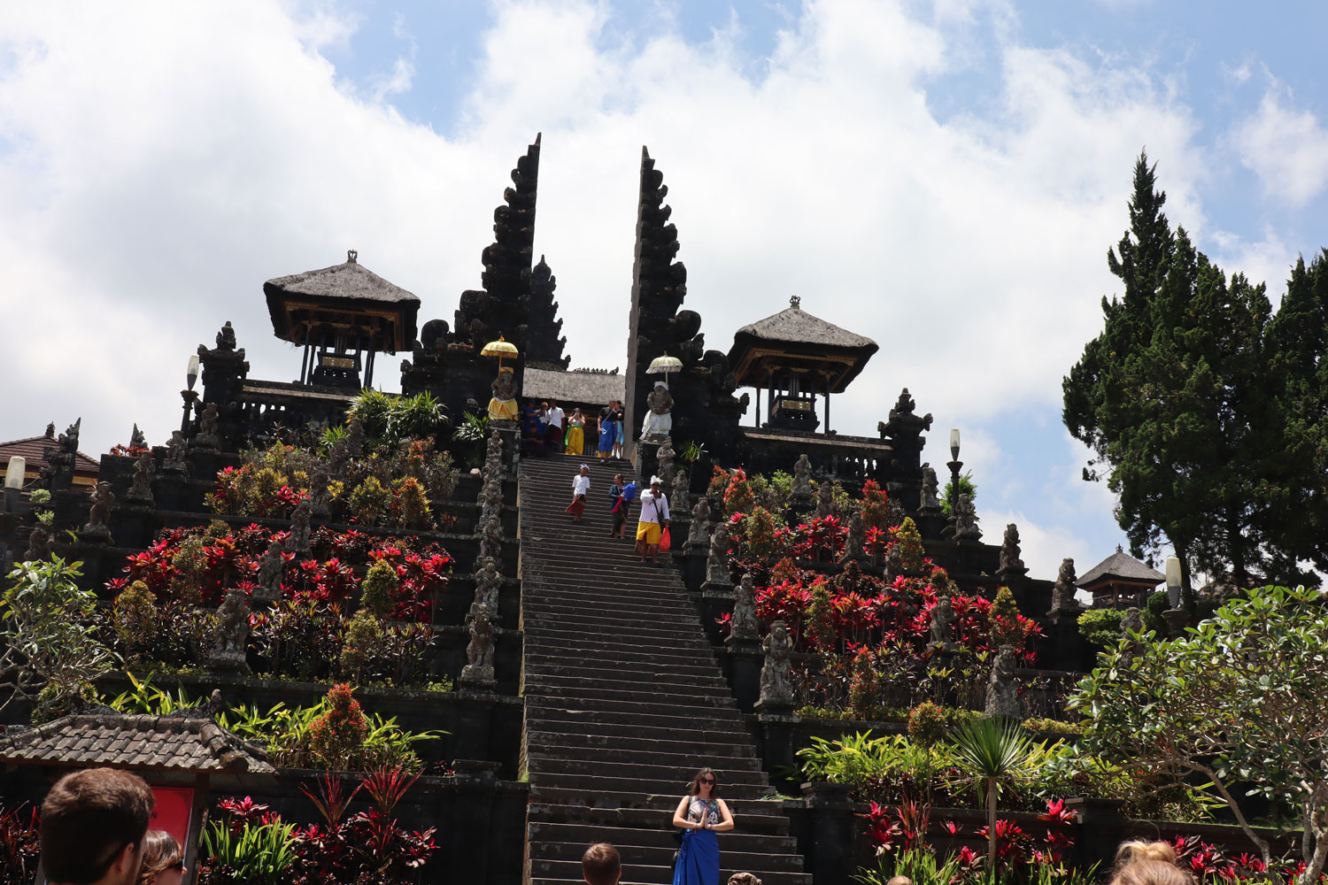 バリ島での観光はイチオシのバリ ヒンドゥ教の総本山であるブサキ寺院。 ここは、バリ・ヒンドゥーの三大神シヴァ、ヴィシュヌ、ブラフマナを祀っており、大小約30もの寺院からなる複合寺院。民族衣装をまとった祭礼に遭遇することがあるかもしれません。