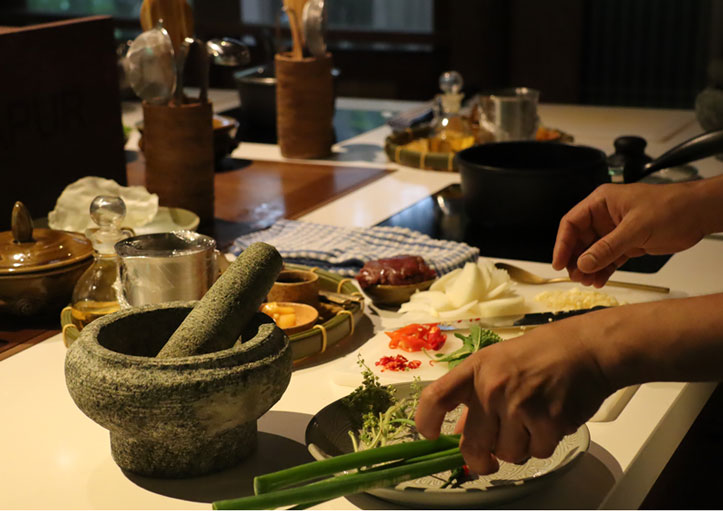 ホテル内には4つのレストランがあり、タイ料理やバイキング、イタリアンなど美食のパラダイス! また、アクティビティの1つでシェフから学ぶ料理レッスンがあります。