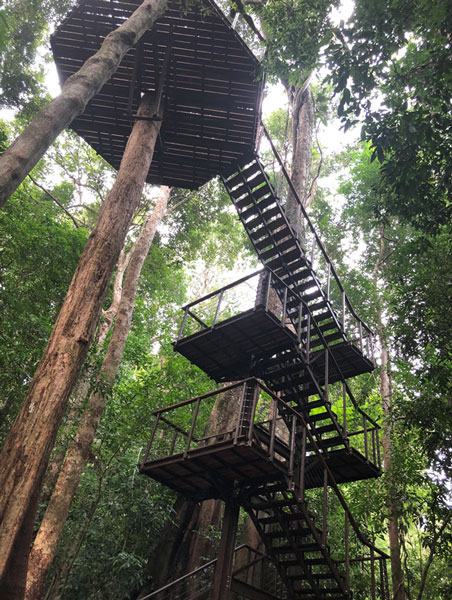 ホテルでの朝食は、バリ島同様ヘルシーなドリンクやヨーグルトの他、中華風、インド風、マレーシアクイ ジーンの他、洋風のものもズラリ。また、アジアならではのお好みで野菜やシーフード、お肉などから選び、 更に麺は春雨、フォー、ラーメン麺などから選択しオリジナルヌードルを作ってくれます。 元気になれる朝食を召し上がったあとは! まずは、ホテル内のネイチャーへ・・・