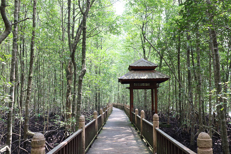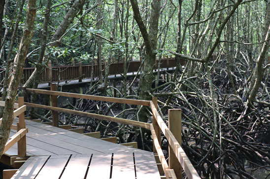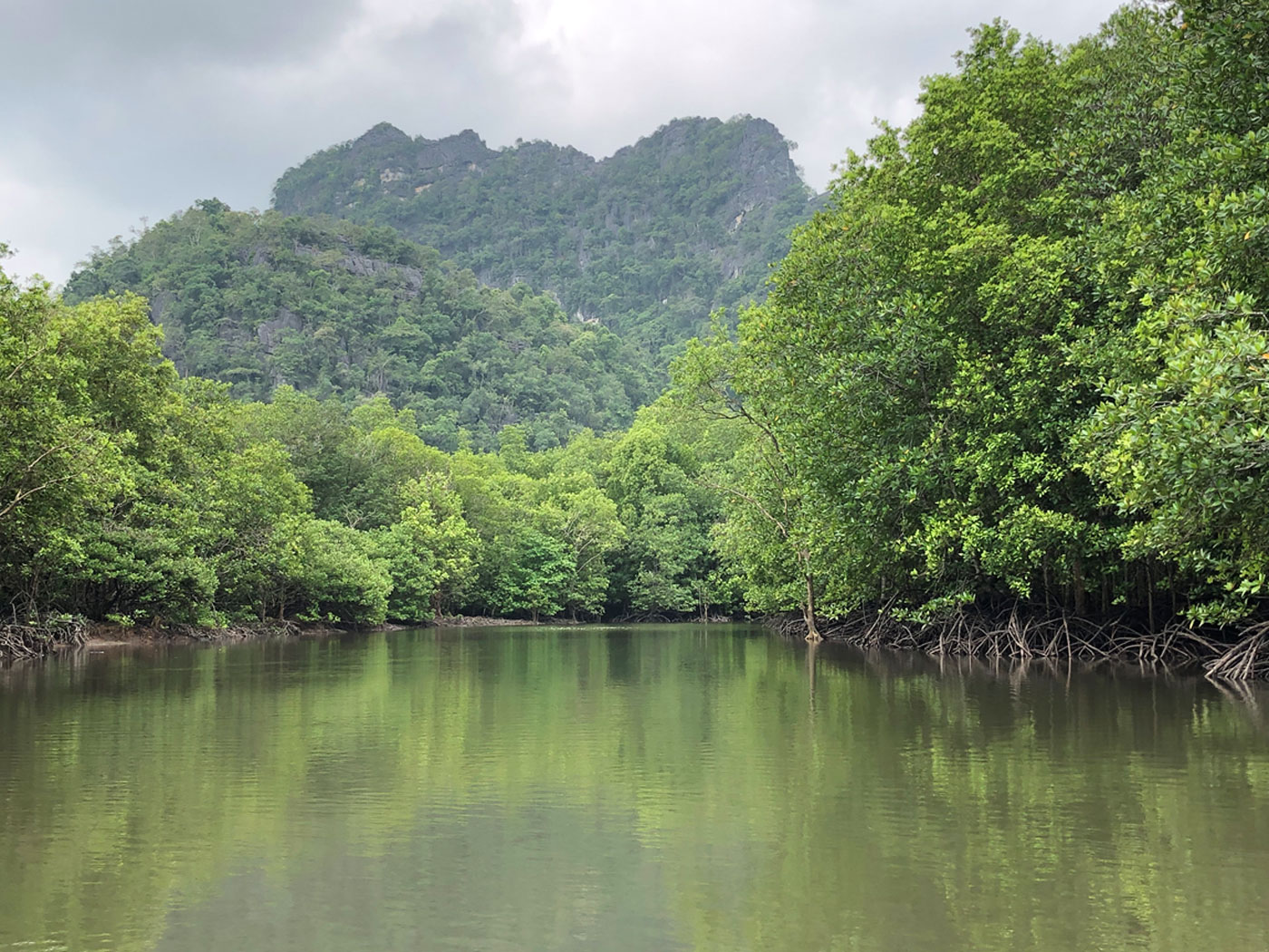 このスピードボートでマングローブが生息するジャングルへとむかったところでボートは一旦ストップ。 マングローブを間近で観察したり、空を見上げると鷹の集団や野生のサルに遭遇したり自然ならではの光景を堪能することができます。また、更にボートを走らせ無人島に上陸。ボートから降りて森林奥へと歩きま す。小洞窟に入ると鍾乳石の自然の姿や沢山のコウモリを見学したり、ここでも野生のサルに出会えるかも? そんなネイチャーウォークを約30分ほど楽しんだあとはボートに戻りしばらく景色を堪能! 魚の養殖場に寄っていろんな魚の餌づけをご覧いただきツアーは終了。とっても満足なツアーです。 天気にも左右されるので、ホテルのコンシェルジュデスクへ前日までに申し込みをしましょう。