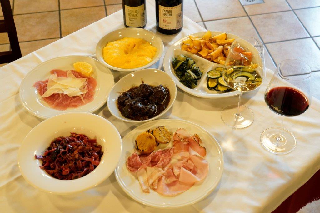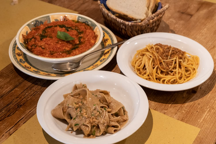 ランチは、ここグレーベ内のトラットリアでこの土地ならではの郷土料理をオーダーします。 トスカーナならではのトーストしたパンにトマトや刻んだキノコのパテが乗ったクロスティーニの前菜やキノ コが練る混まれたパスタメニュー、ウサギのラグーパスタ(ミートソース)など、季節のパスタをお楽しみ下 さい。