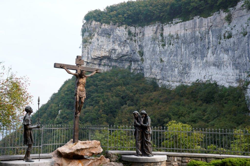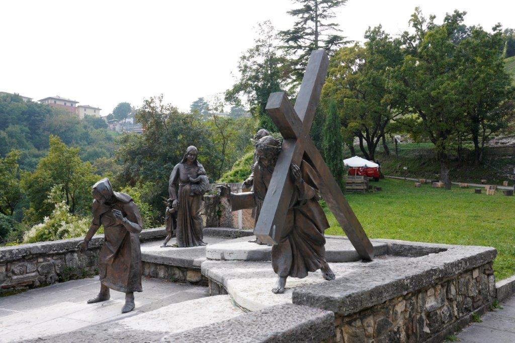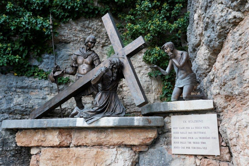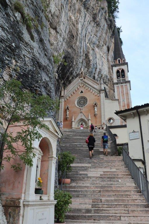 断崖絶壁の岩山の聖域に建つマドンナ デラ コロナは教会だけでなく、教会までの道のりにはキリストが処刑されるまでの