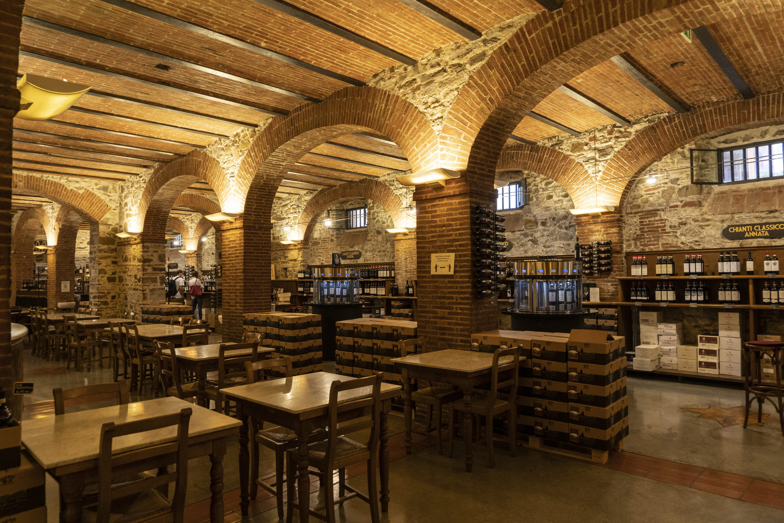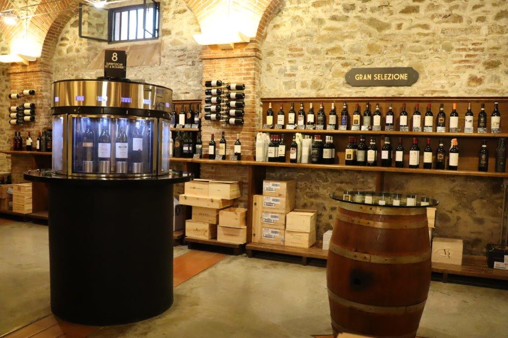 フィレンツェから車で約45分。左右葡萄畑の景色を堪能しながらキャンティの町へと向かいます。 グレーベ到着後、エノテカにてお好みのワインをお好みの量でテイスティング! グラスを手にいろんな地域に分かれたテイスティングマシーンでちょい飲み! マシーンの周りで飲むも ヨシ!テーブルでサラミやチーズの盛り合わせと一緒に楽しむのもヨシ。