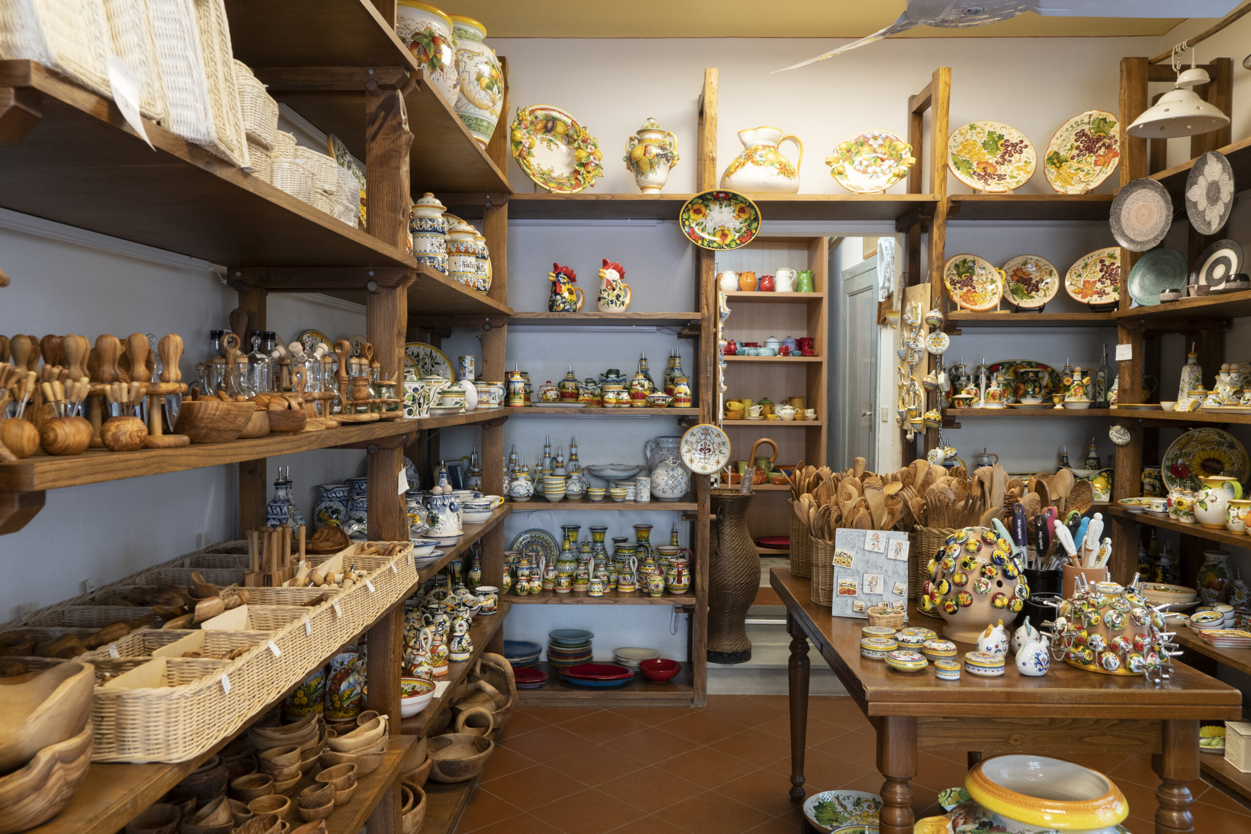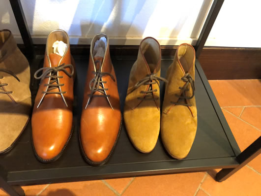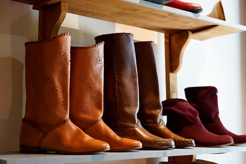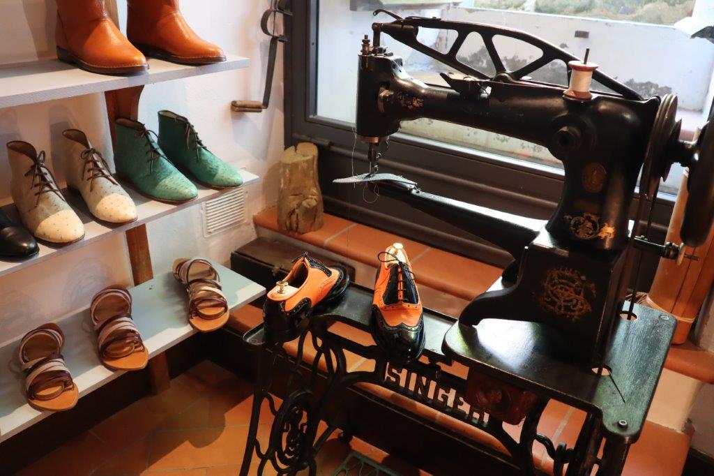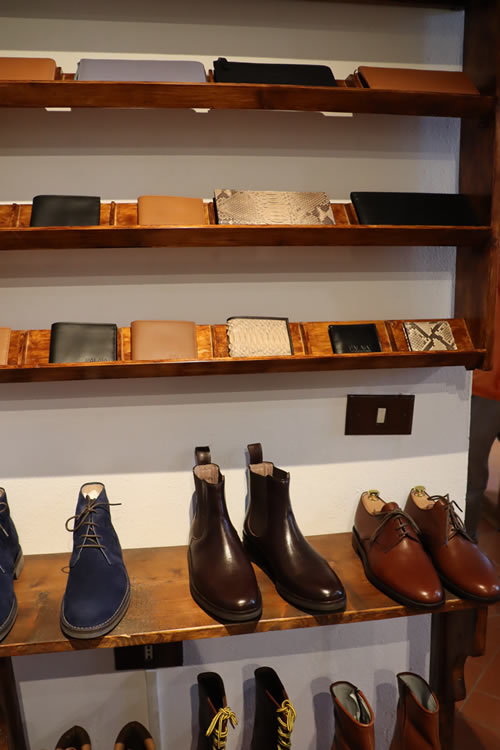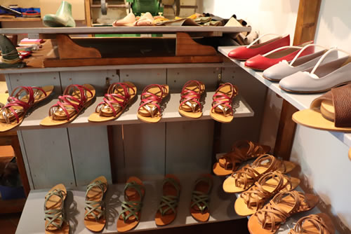 雲一つない晴天に恵まれた気候、この小さな村のショップたちはどの店に入ってもオリジナルティ溢れる商品が多く、こちらはオーダーメイドの靴ショップ。男性用の靴でもスタイリッシュ! オシャレなデザインのものばかり。オーダーメイドの靴なので、まずは足の型をとり、革を選び、色を決めていきます。 約1か月後にご自宅へ配送されます。一度、靴の型をとればショップにデーターがあるので次回は色、デザイン等を伝えるだけ。 女性ものはブーツやサンダル、ベルトなど色使いがとっても素敵です。 特にブーツは既製品だとふくらはぎのサイズが合わないことがありますが、オーダーメイドだとふくらはぎの寸法を測って自分にあったブーツを造ってくれます
