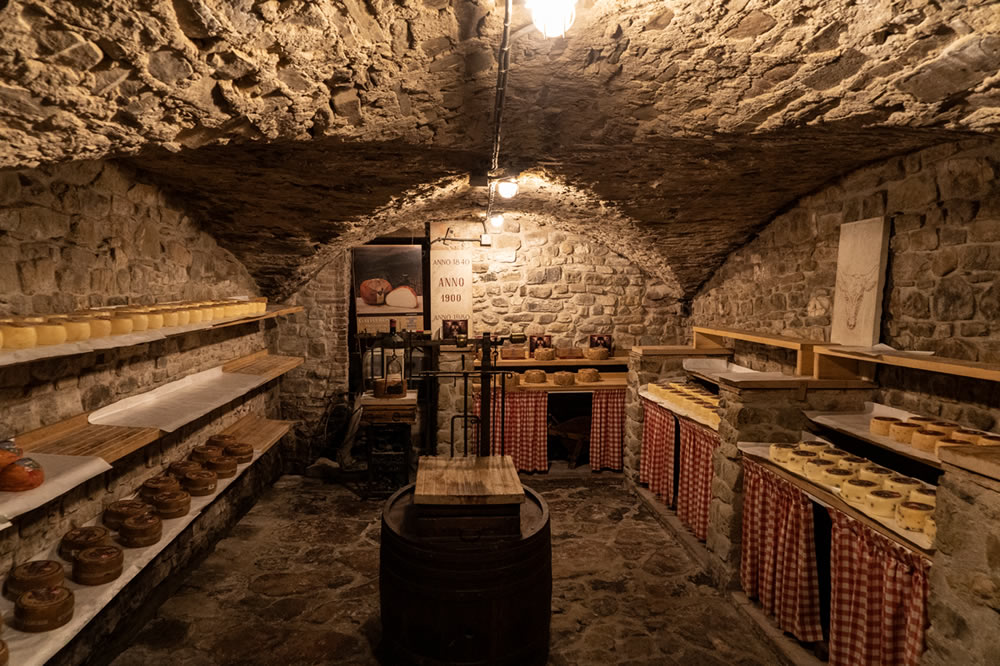 肉屋店内の一角に地下へ降りる階段があります。降りてみるとチーズの貯蔵庫になっており、この熟成チーズは 量り売りで購入することができます。日本未入荷の珍しいチーズばかり!