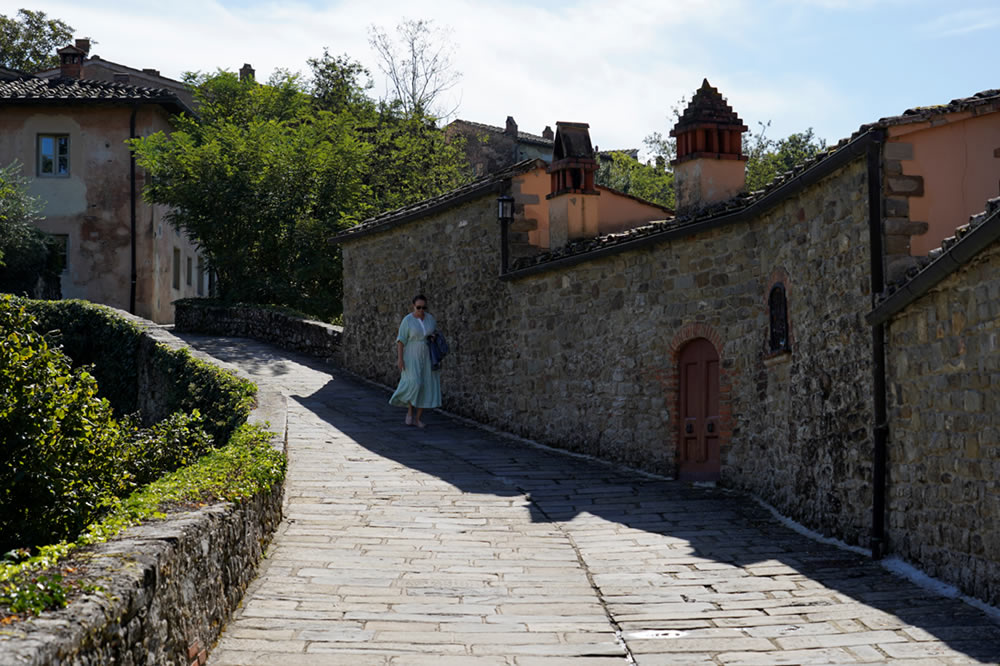 ここはイタリアンブランドでお馴染みサルヴァトーレ・フェラガモのグループ会社が所有するホテルと小さな村。1000年以上もの歴史をもつ小さな村は中世にタイムスリップしたかのような古い建物がズラリ。周囲は45ヘクタールものワイナリーに囲まれています。ワイン造りのために1993年この土地を購入しフェラガモ家が運営しています。そんな中世の面影残すフェラガモ村を散策。