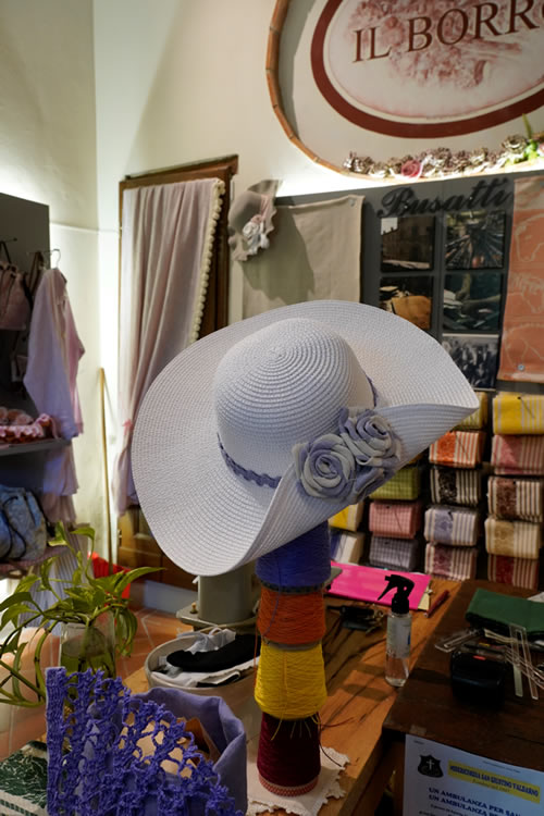 最高の生地を製造しているブーザッティ社のショップがここフェラガモ村にあります。 最高の品質を150年以上守り続けながら、今では世界展開をしています。 ブーザッティ創業は1842年、1900年代初頭の梳毛機が今でも現役活躍しています。