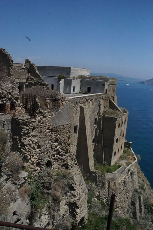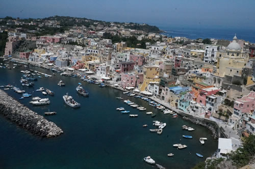 ナポリから船で約40分。途中ベスビオ火山を眺めながらゆっくりと船旅を楽しんでいただきプロチダ島に到着。