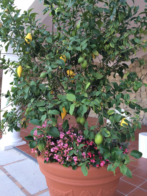 ホテルエントランスまでレモンのプランターがお迎えしてくれます。