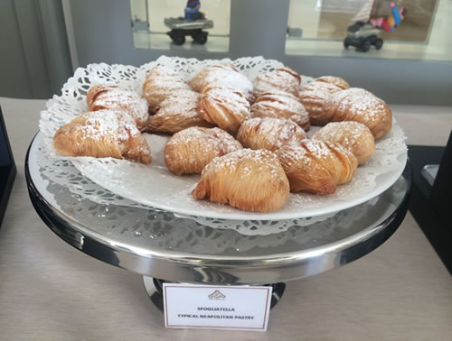 上左画像のお菓子はこの地域で有名な伝統菓子 スフォリアテッラ。