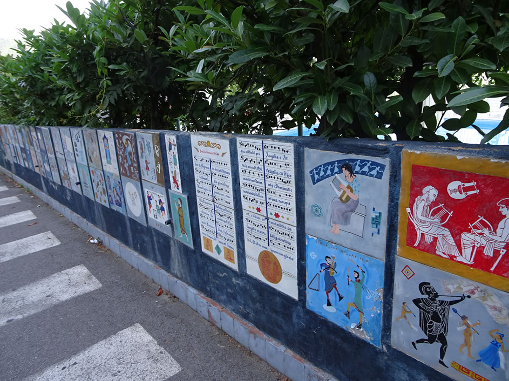 その途中にこのようなイラストが描かれた塀があります。