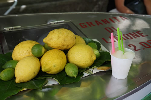ビーチカフェではプロチダ島パニーノの他、プロチダ島特産のレモンで作るグラニータも一押しです。