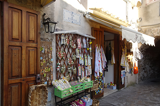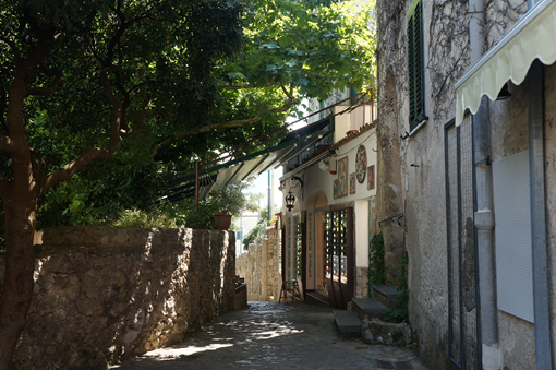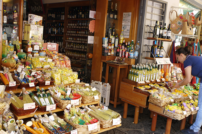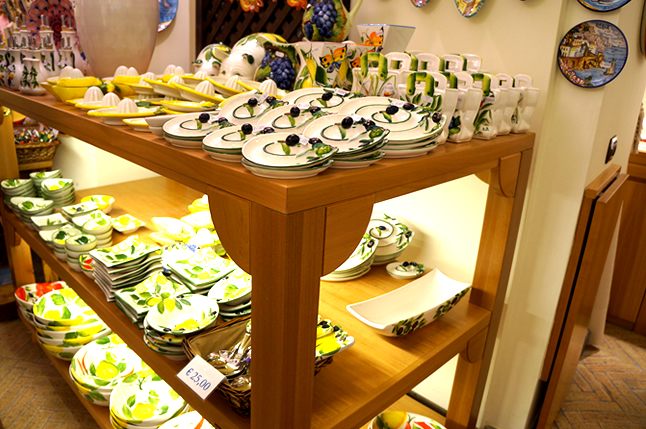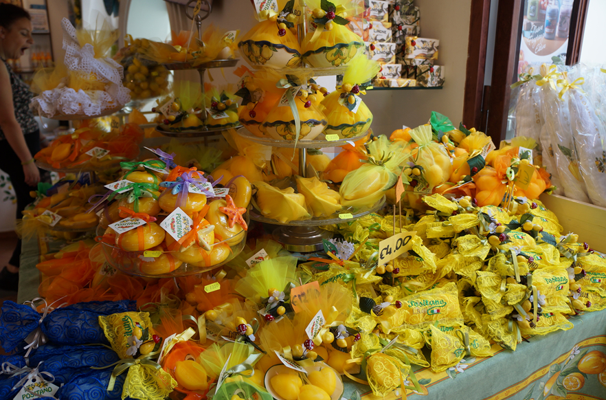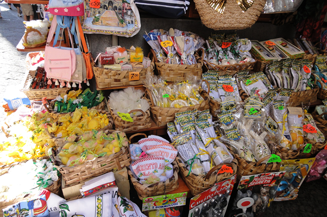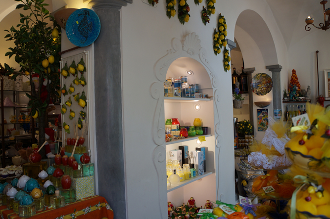 教会の階段に座って休憩をする観光客も多くみかけます。 アマルフィのシンボルとも言えるドゥオモ・ディ・サンタンドレア。 このドゥオモ広場はいつも観光客で賑わっており、この先より沢山の階段状の脇道が上へと続いています。 11月~3月のシーズンオフになると観光客もかなり少なくなりますが、真夏は大渋滞! でも、やっぱりアマルフィは人気の街。アマルフィの街を散策していると豊富な種類のレモングッズが目に入ります。 レモン飴、リモンチェッロ(レモンのリキュール)、レモンのフレグランスなどなど・・・・ショッピングも楽しめるアマルフィ。