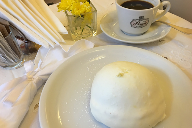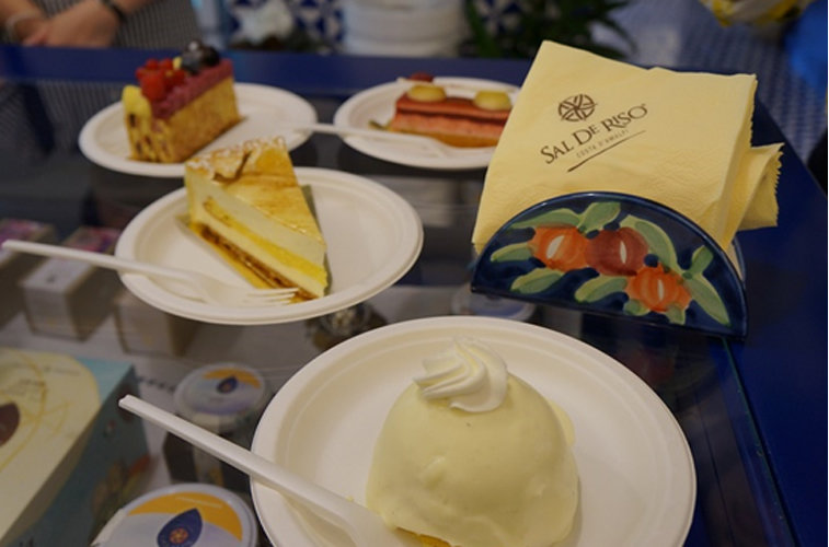 ドゥオモ広場近くにある老舗パスティチェリア。 アマルフィにある老舗のパスティチェリアで是非味わっていただきたいのが、デリツィア・アル・リモーネ。 ちょっとおっぱいのような形のケーキですがクリームたっぷりながらさっぱりとしたレモン味。スポンジケーキとレモンカスタードをレモンクリームでコーティングしたもの。
