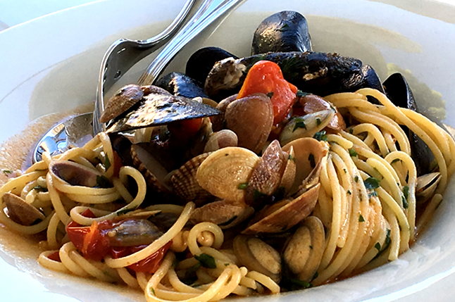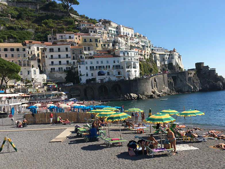 アマルフィの海岸沿いにあるレストランテ。 シーフードパスタや魚介のフリッターなどグルメも満喫!
