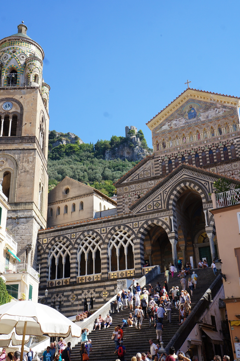 映画「アマルフィ 女神の報酬」のロケ地にもなったアマルフィ。険しい断崖に白壁の家々が立ち並ぶ素晴らしい景色が連なっています。 アマルフィ海岸からメインストリートの両脇にはお店が立ち並ぶ商店街。 アマルフィのメインはドゥオモ・ディ・サンタンドレア。
