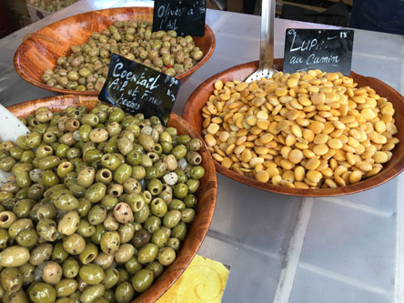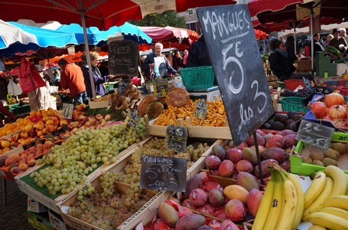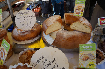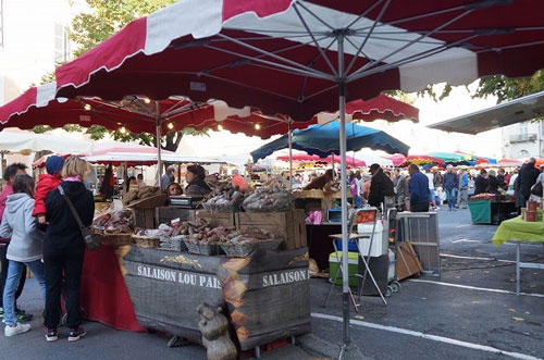 ヴァラントレ橋から歴史を感じさせる街並みが続き、市場がある広場へと繋がっています。 市場にはカオール地方の野菜やチーズなどの食材をはじめ美味しい屋台やちょっとした雑貨もあります。 この地方ならではの市場用かごもフランスらしく可愛らしいものです。