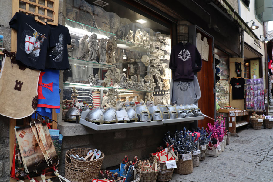 時には、中世の時代の衣装を身に着けた人が現れたり、おみやげ物店では剣が売られていたり・・・