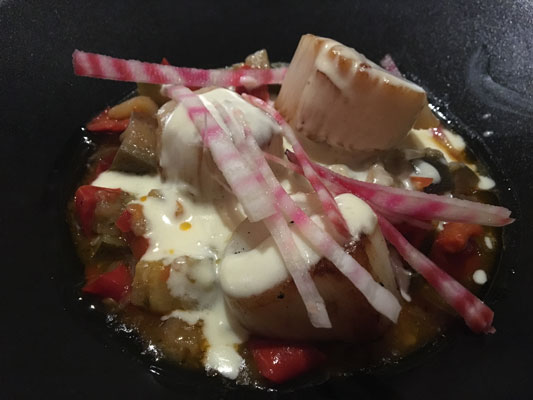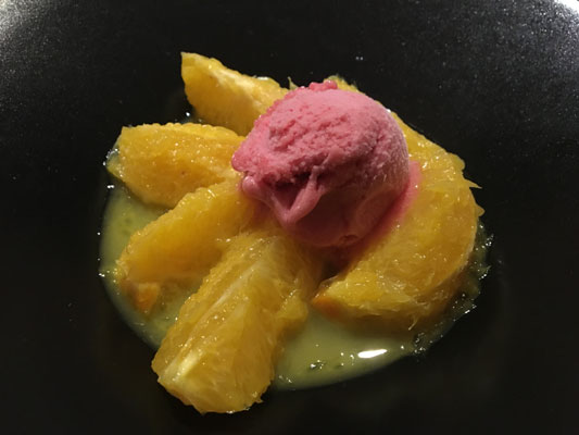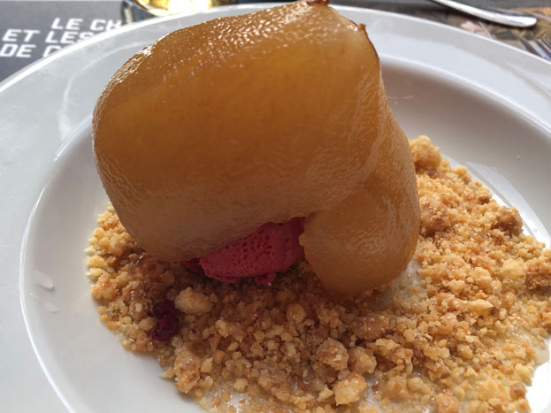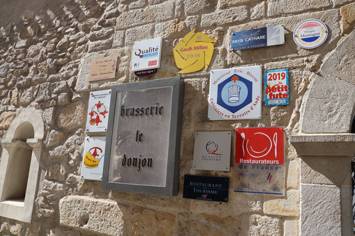 カルカソンヌのシテ内や近郊レストランではこのカスレメニューを食べることをおすすめします。今回視察中に訪れたお店がこちら。シテ内にあるレストランでミシュランガイドで★をいただいているレストランの1つ。2コースメニューで23ユーロ。今回はメインとデザートのチョイス。