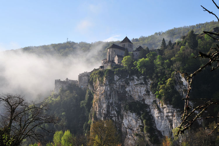 三層構造からなる断崖絶壁の聖堂と礼拝堂は南西フランス巡礼地。