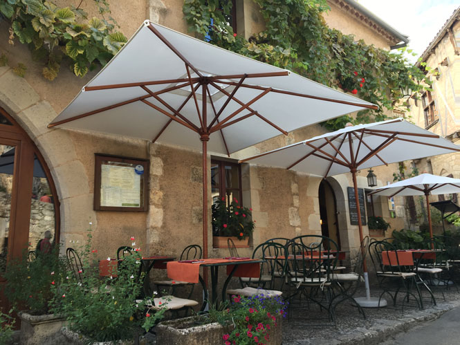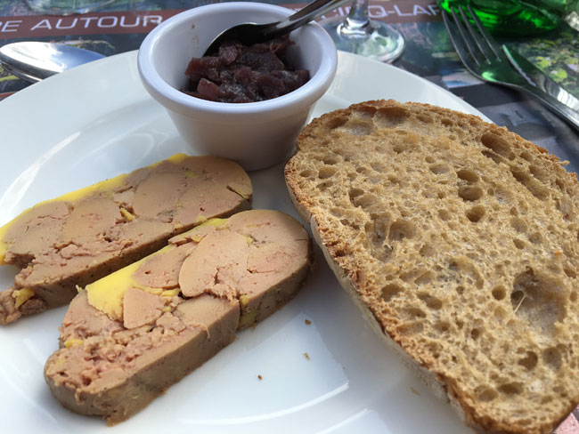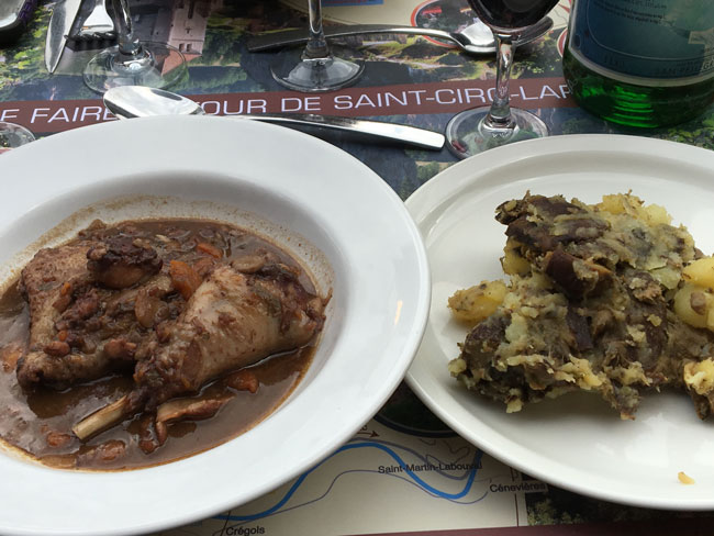 高台から見渡せる景色をもつこちらのレストラン。食事は日替わりですが、鶏肉の赤ワイン煮込みやじゃがいも 料理などこの地方の郷土料理は忘れることができない美味!ミディ・ピレネー地方はフォアグラが名物。