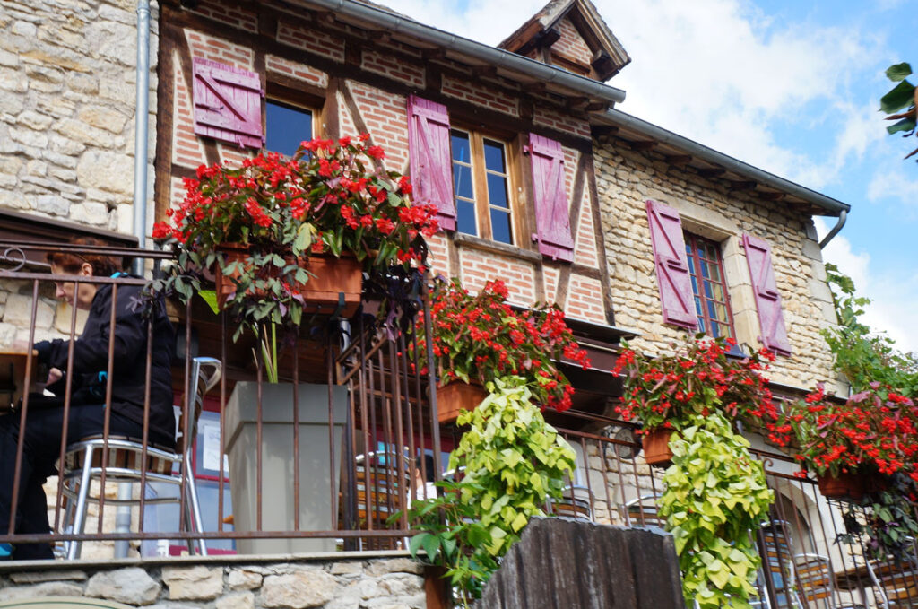 コルドの村に一歩足と踏み入れてみると、メインストリートである石畳の小路にはびっしりと石造りの民家や木枠が素晴らしい建物が並んでおり、観光案内所やカフェ、郷土料理のお店やこの地方ならではのチーズやワインショップ、雑貨店と広場があります。途中、昔の市場の跡が見えてきます。昔は遠方からリネンなどの布や生活用品の売買のための市場だったそうです。 歩き疲れたら広場のベンチで休憩もヨシ!ですし、展望所から眼下に広がる景色は更にコルドの中世の面影に浸ることでしょう。また、アーティストが多い村でもあり、絵画、彫刻などのアトリエ巡りも楽しみの1つ。
