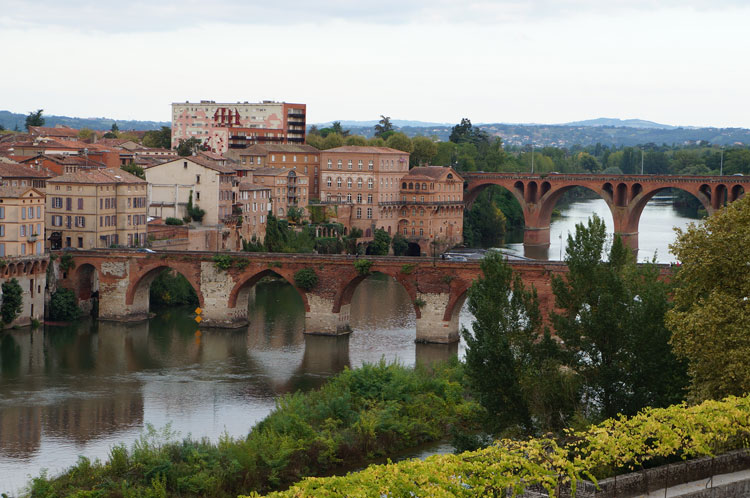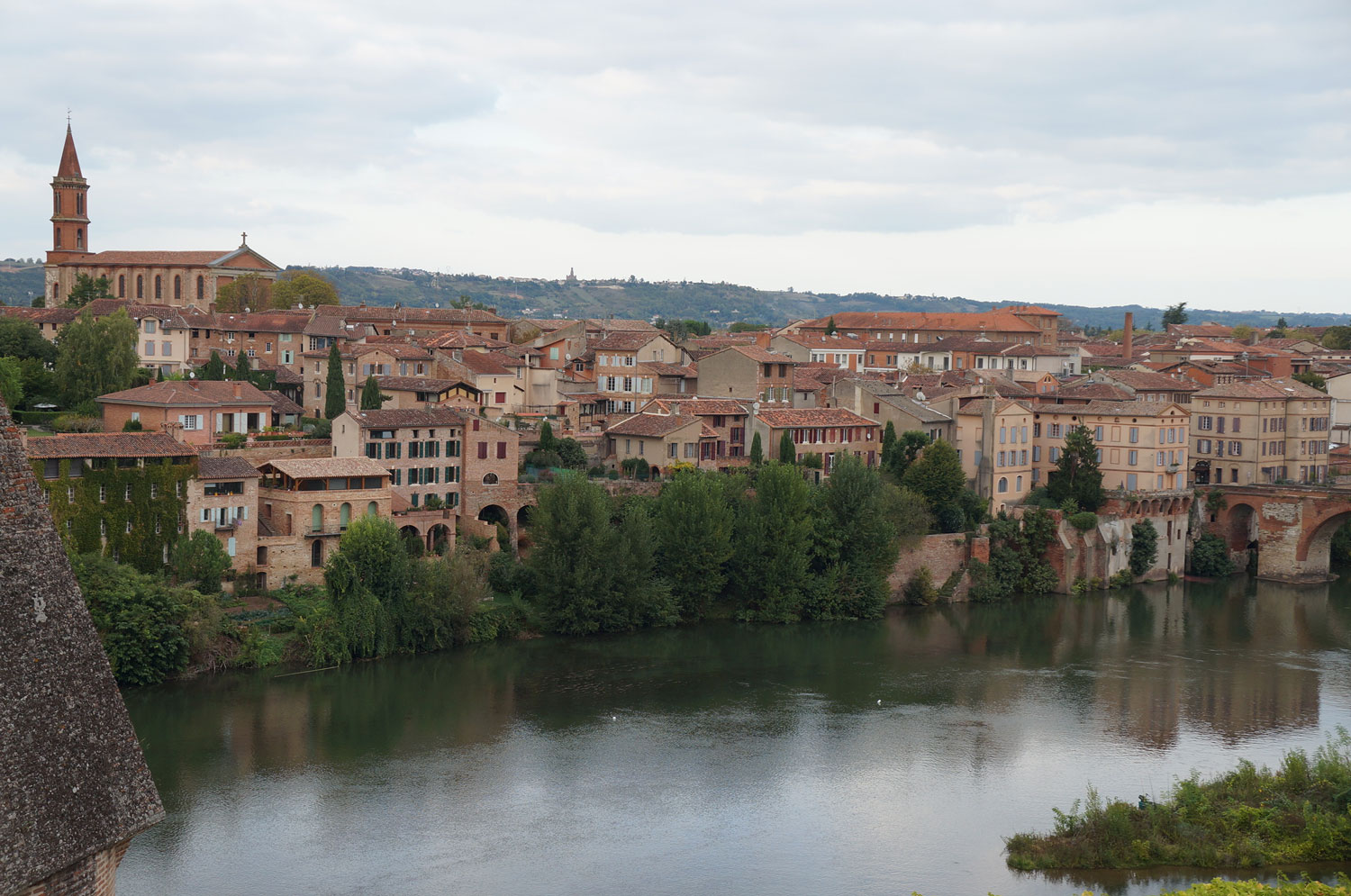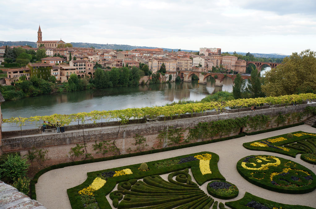 サント・セシル大聖堂敷地内にある庭園やタルヌ川沿いのレンガ色の建物の景色は素晴らしいものです。