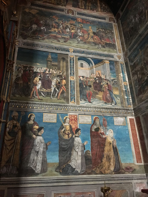 丸天井のフレスコ画はイタリア絵画としてはフランス最大最古のもの。フランドル派の至宝である「最後の審判」 フランボバイヤン様式の聖歌隣席の仕切り壁と囲いの部分は、多色使いの彫刻で飾られている。
