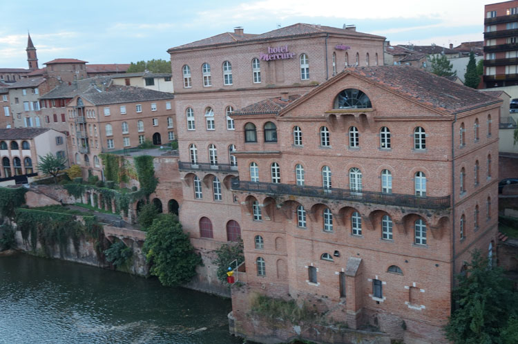 右端にみえるレンガの建物はアルビでお泊りいただくホテル。このカルヌ川の面した眺めがよいホテルでの宿泊。