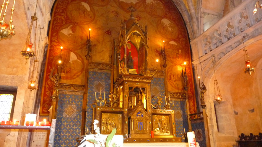 19世紀、城塞都市の復元に力を注いだヴィオレ・ル・デュックによって修復され、13~14世紀のステンドグラスは必見です。