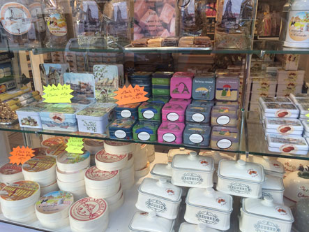 オンフルールはウォッシュチーズの宝庫。カマンベールやポン・レヴェックなどのチーズが有名。ノルマンディー地方は牛乳やリンゴの名産地。 チーズやバターなどの乳製品も有名です。オンフルールは著名なレストランが多く、特産品のチーズやリンゴ、オンフルールで水揚げされた海鮮類を使った料理が味わえるグルメな町でもあります。 リンゴから作られるシードル(リンゴ酒)の種類も豊富でオンフルールの街の中心部には可愛らしい酒屋さんが多くありますので、味わってみてはいかがでしょうか。