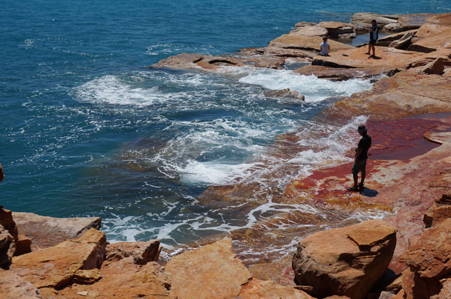 この赤茶色の岩から眺めるインド洋の絶景はガンシュームポイントの絶景スポットです。