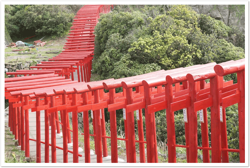 絶景、龍宮の潮吹側から立ち並ぶ123基の赤い鳥居